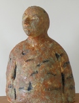2016In de Harry- serie. Harry met steun. Dit beeld is geglazuurd met verschillende oxides en glazuren die in verschillende lagen zijn opgebracht en er weer gedeeltelijk afgehaald. Gebakken op 1240 graden C Verkocht